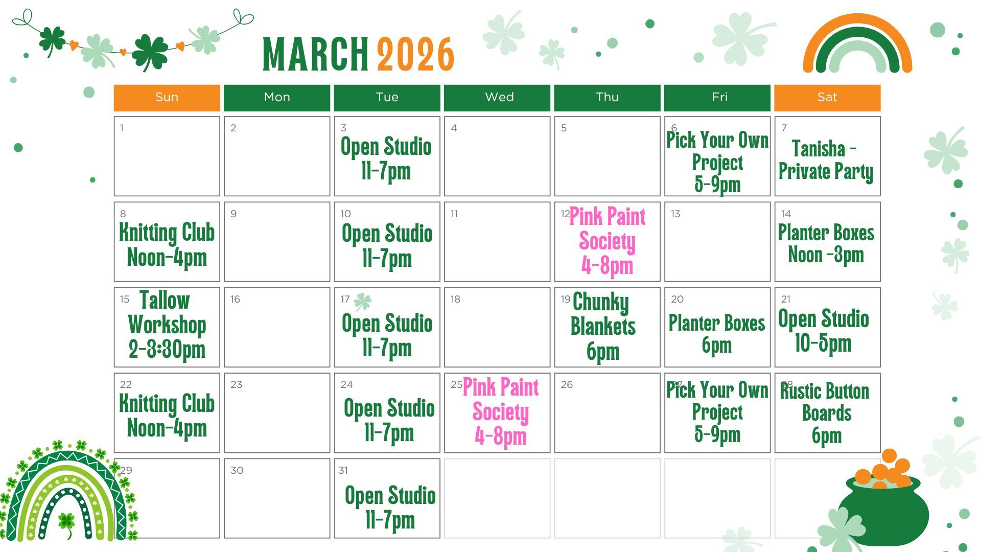WORKSHOP CALENDAR
